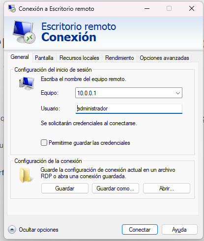 mstsc - Conecta haciendo doble clic sobre el archivo