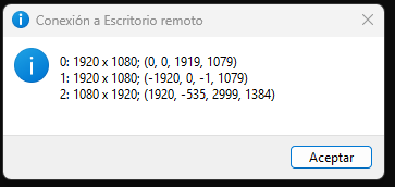 → Usa solo los monitores 0 y 1- El monitor 2 queda fuera de la sesión RDP